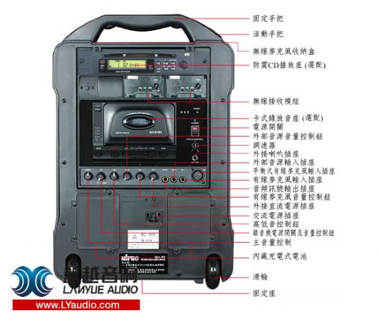 | 使用特点 | 便於拖拉及手提高效率多功能无线扩音 |